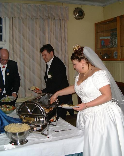 brudparet och deras föräldrar hämtar åt sig av "puffeten" (13/44)